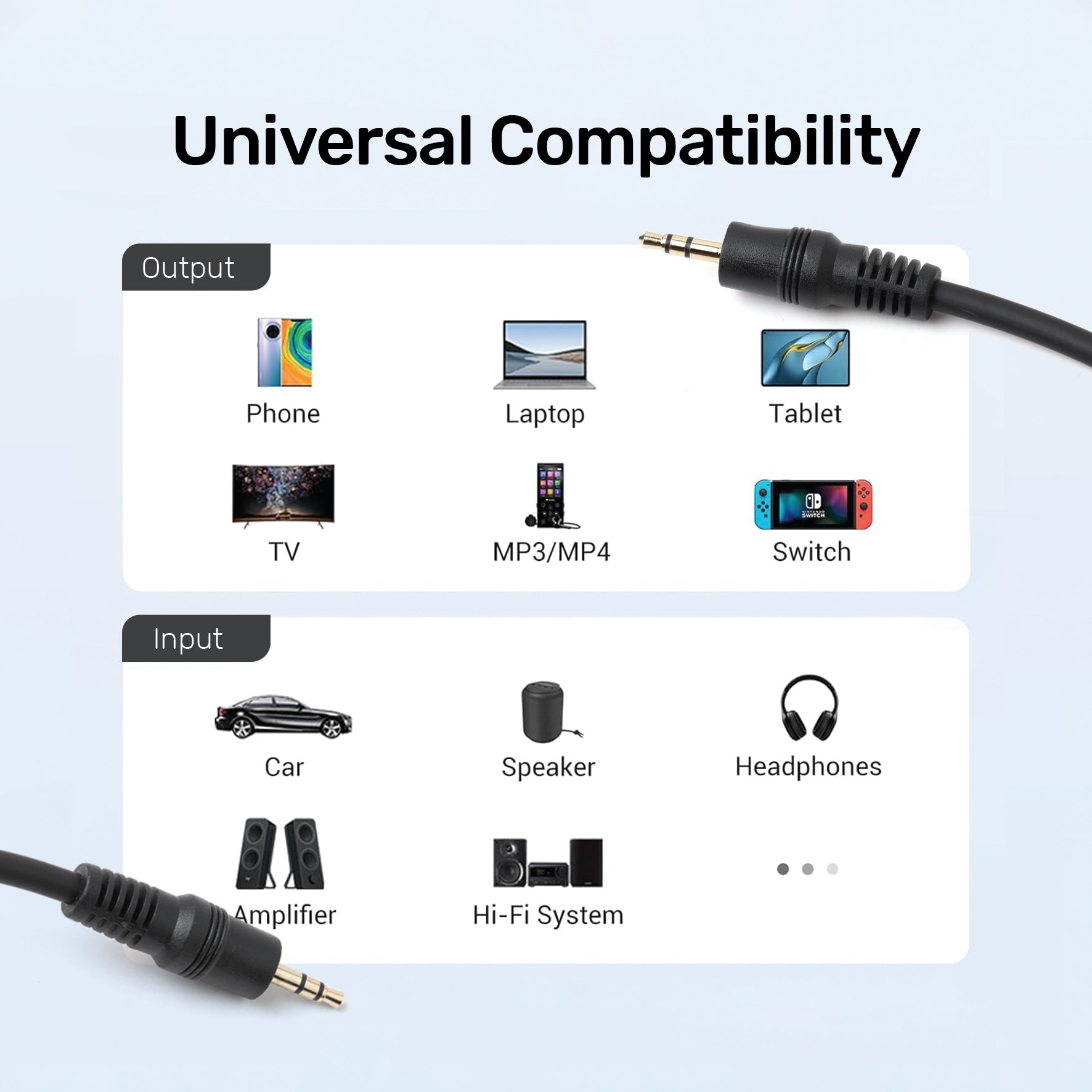 • 【Length and adaptability】0.5m | 1.0m | 1.5m | 2.0m | 3.0m Color: Black | Supply range: 2.5mm to 3.5mm stereo audio jack cable