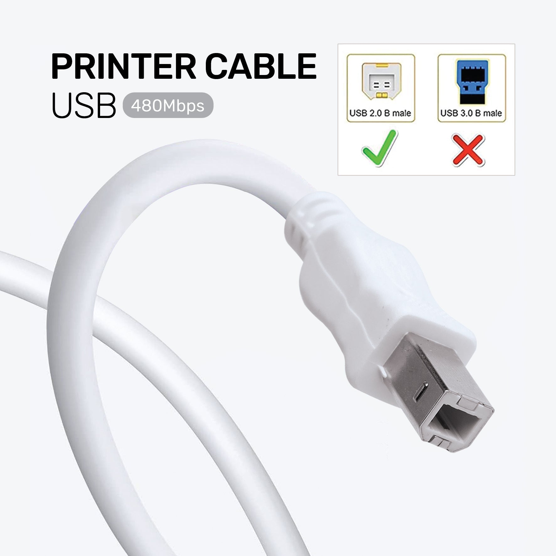 ARIZONE CABLE PRINTER USB 10M WHITE High Speed Cable Printer for HP, Canon, Scanner Cable A USB Male to B Printer Male (Compatible with Computer, Printer, White)