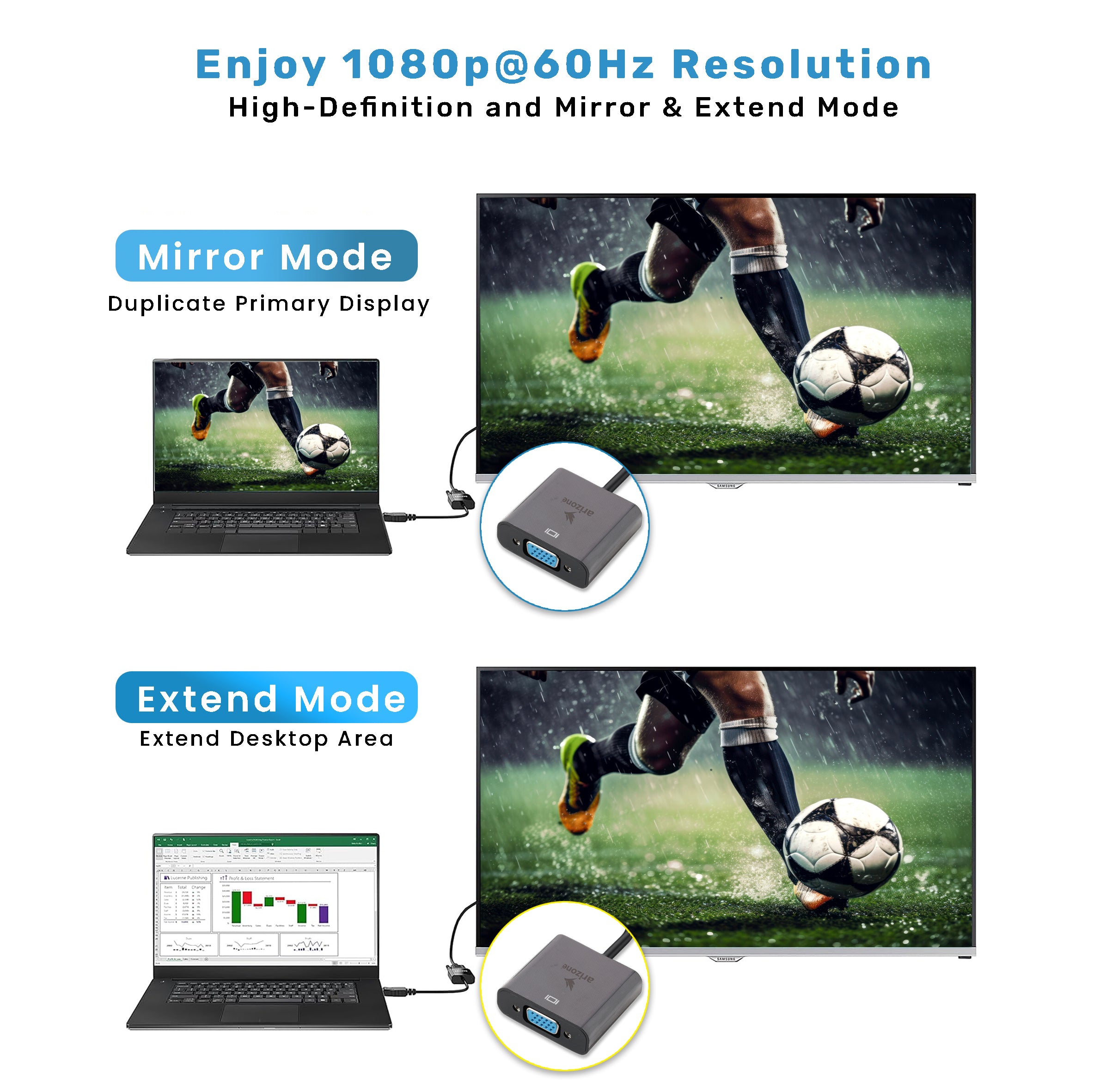 *【Compact design】: Tuck this lightweight gadget into your bag or pocket for business presentations with your laptop and projector, or to extend your desktop screen to a monitor or TV.