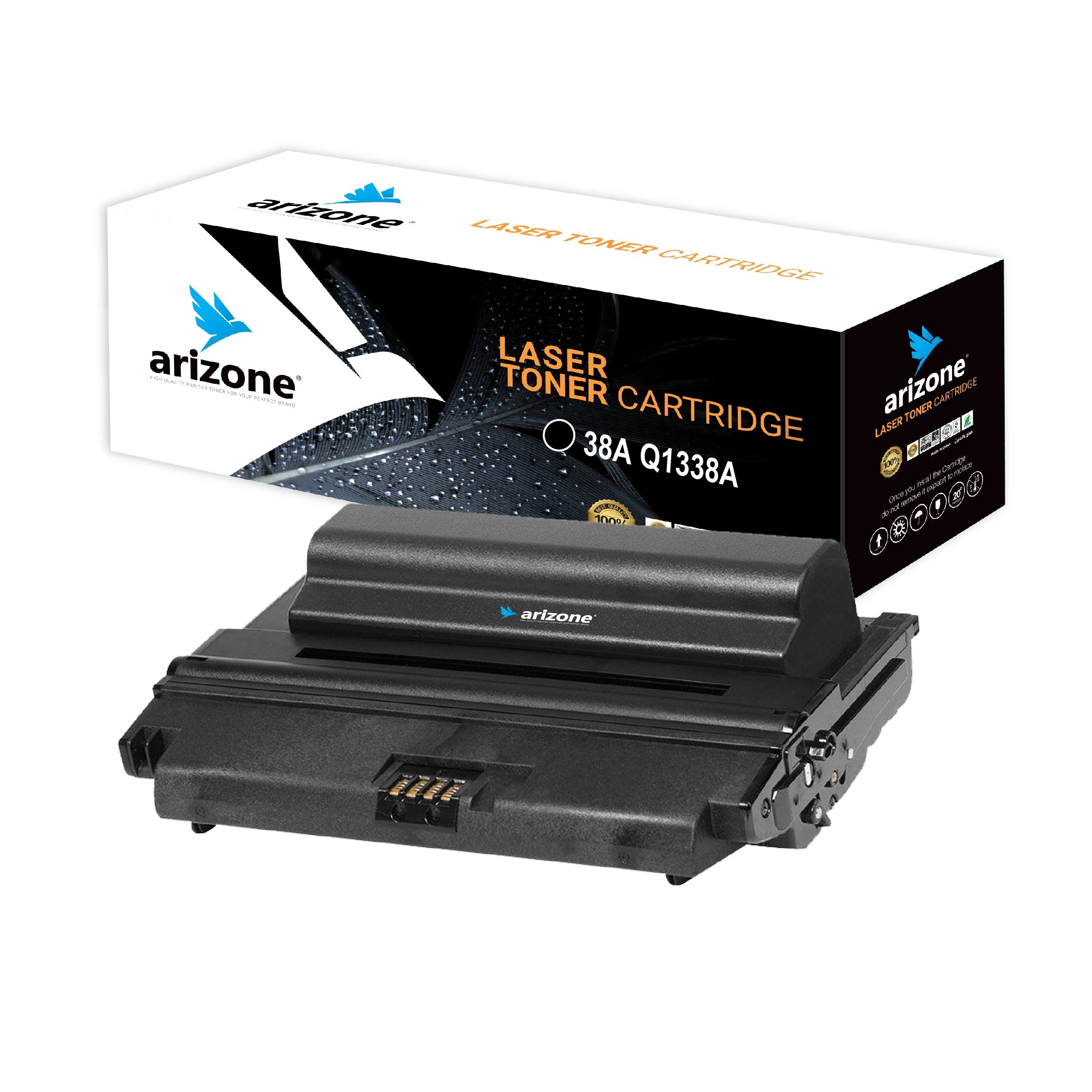 • ARIZONE toner cartridge replacement 38A Q1338A are manufactured in an ISO 9001 & ISO14001 certified facility. All Toner Cartridges are engineered to produce superb results.