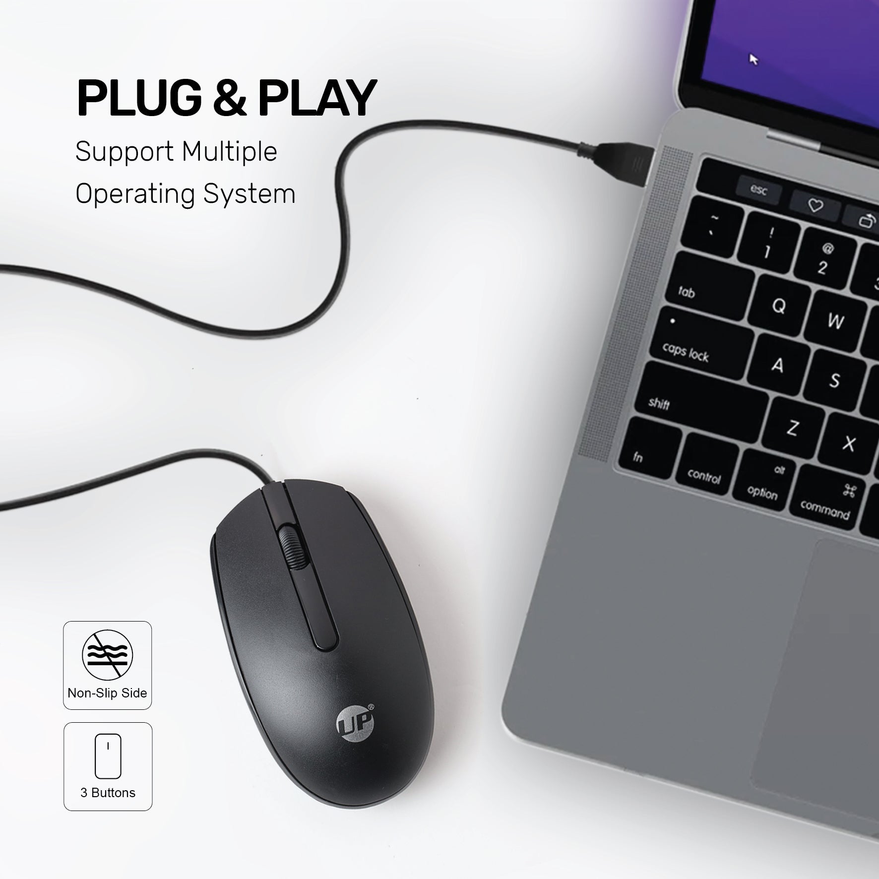 Wired USB easy connectivity 3 buttons with scroll feature for ear operations Connect to any USB port on your device.
